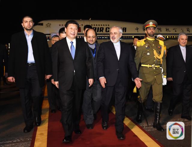 新華網(wǎng)北京1月24日電 1月22日,國家主席習近平乘專機抵達伊朗首都德黑蘭,開始對伊朗進行國事訪問。這是在梅赫拉巴德機場,習近平受到伊朗外交部長扎里夫等熱情迎接。(新華社記者饒愛民攝)