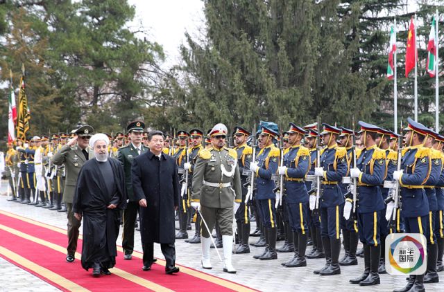 1月23日,國家主席習近平出席伊朗總統(tǒng)魯哈尼在薩德阿巴德王宮共和國樓廣場舉行的隆重歡迎儀式。(新華社記者馬占成攝)