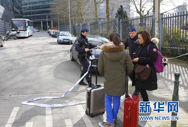 ??? 3月22日,在比利時(shí)首都布魯塞爾馬埃勒貝克地鐵站附近,一條通往歐盟機(jī)構(gòu)的道路被封閉。比利時(shí)聯(lián)邦檢察院22日發(fā)表聲明稱,當(dāng)天上午在布魯塞爾扎芬特姆機(jī)場(chǎng)和市區(qū)地鐵站發(fā)生的爆炸是自殺式恐怖襲擊。 新華社記者葉平凡攝