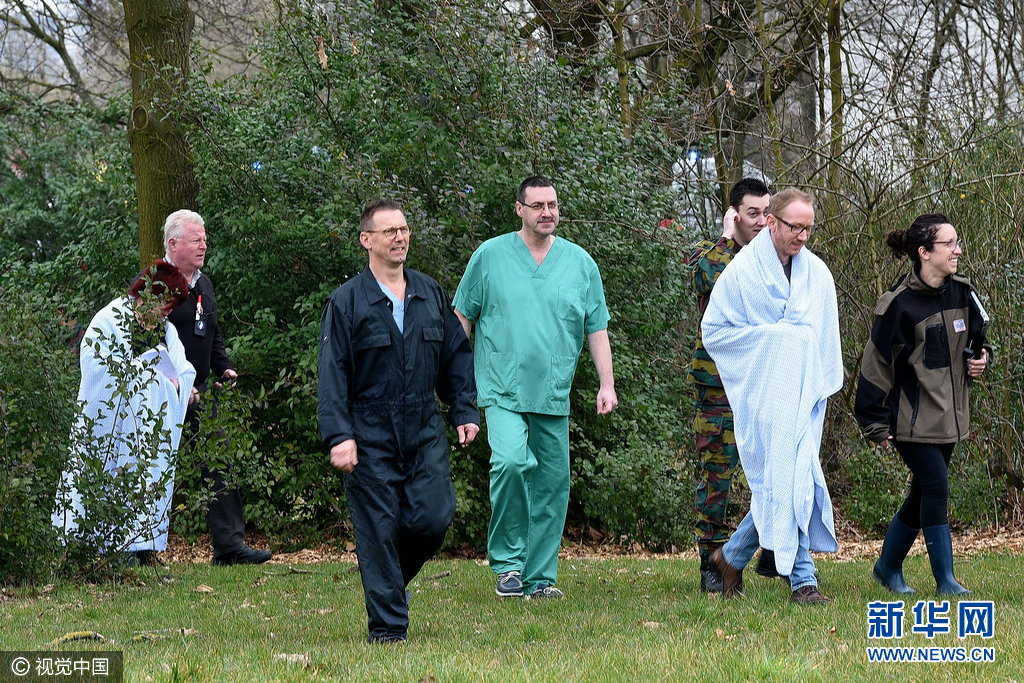 ??? 當(dāng)?shù)貢r(shí)間2016年3月24日,比利時(shí)布魯塞爾, Koningin Astrid-Reine Astrid 軍事醫(yī)院發(fā)生天然氣泄漏,民眾緊急疏散,一部分在日前布魯塞爾恐襲中受傷的民眾在此接受治療。圖片來(lái)源:視覺(jué)中國(guó)