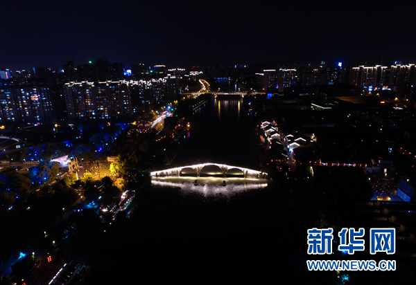航拍杭州拱宸橋附近的的京杭大運(yùn)河夜景(5月3日攝)。杭州自古多橋。斷橋、長(zhǎng)橋、錢(qián)塘江大橋、復(fù)興大橋……古樸文雅輝映現(xiàn)代氣派,透出這座城市融匯古今、靈動(dòng)開(kāi)放的底蘊(yùn)。舉世矚目的二十國(guó)集團(tuán)(G20)領(lǐng)導(dǎo)人第十一次峰會(huì)將在這里舉行。有趣的是,這次峰會(huì)的會(huì)標(biāo),也是一座橋——一座由20個(gè)成員搭起的“橋”。這會(huì)是一座怎樣的橋?它能否緩解當(dāng)前全球經(jīng)貿(mào)河道上的種種淤塞?它能否跨越發(fā)達(dá)國(guó)家和發(fā)展中國(guó)家之間的溝溝壑壑? 全球在期待,中國(guó)在行動(dòng)。新華社記者黃宗治攝