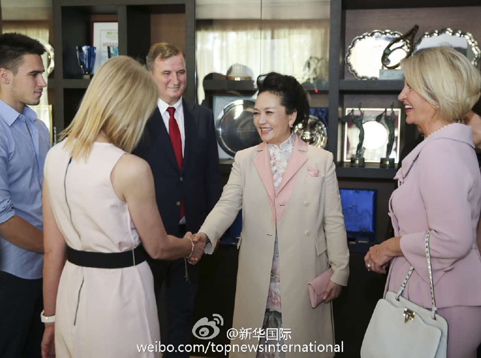 ??? 新華網(wǎng)北京6月18日電 18日中午,彭麗媛在塞爾維亞總統(tǒng)夫人德拉吉察陪同下,參觀了德約科維奇網(wǎng)球培訓(xùn)中心,并同塞爾維亞著名網(wǎng)球運(yùn)動員德約科維奇的母親、叔父和弟弟親切會面。彭麗媛對德約科維奇家人說:“小德在中國擁有很多粉絲?!迸睇愭路Q贊德約科維奇不僅球技精湛而且充滿愛國情懷。彭麗媛還向網(wǎng)球培訓(xùn)中心贈送德約科維奇自傳《一發(fā)制勝》的中文版。?(新華社新華國際微博報道)
