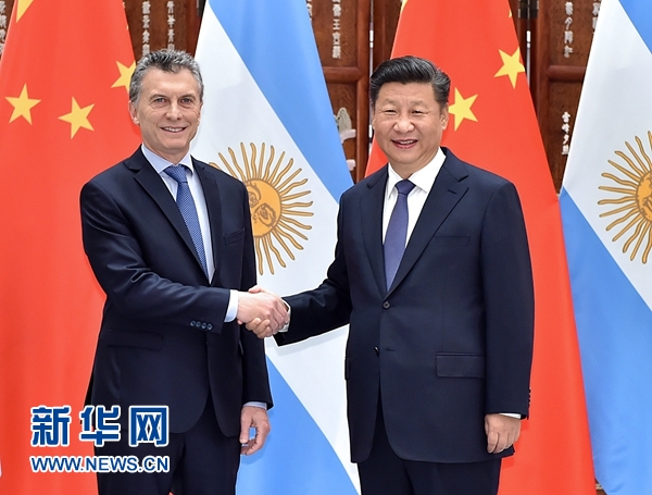 9月3日,國家主席習(xí)近平在杭州會見前來出席二十國集團領(lǐng)導(dǎo)人杭州峰會的阿根廷總統(tǒng)馬克里。 新華社記者 李濤 攝