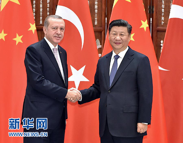 習近平指出,去年,土耳其成功舉辦了二十國集團領導人安塔利亞峰會,并同中方就籌備杭州峰會保持了良好溝通。在雙方共同努力下,我同總統(tǒng)先生達成的關于推動中土雙邊關系發(fā)展的許多共識已經(jīng)或者正在得到落實,取得可喜成果。中方愿以今年中土建交45周年為契機,同土方一道努力,推動中土戰(zhàn)略合作關系得到更大發(fā)展。中土關系發(fā)展前景令人期待。