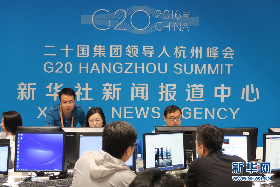 二十國集團(tuán)工商峰會(huì)(B20)于9月3日至4日在杭州舉辦。作為G20機(jī)制的重要配套活動(dòng),B20是各國工商界參與全球經(jīng)濟(jì)治理和推動(dòng)世界經(jīng)濟(jì)增長的重要平臺(tái)。圖為工商峰會(huì)開幕當(dāng)天,新聞中心內(nèi)記者忙碌的身影。新華網(wǎng) 陳競(jìng)超 攝
