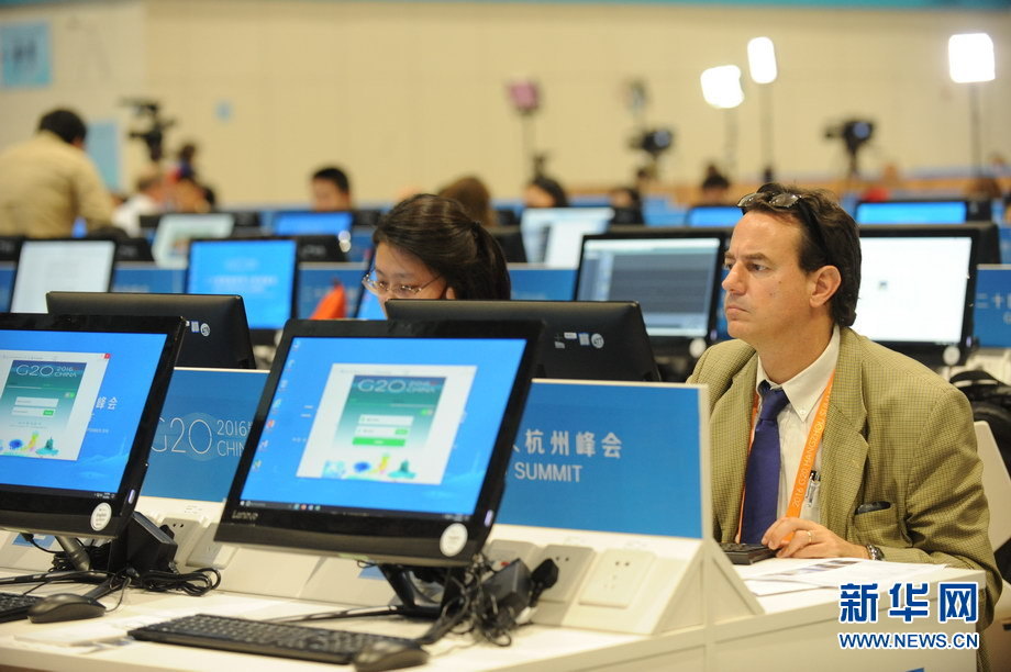 二十國(guó)集團(tuán)領(lǐng)導(dǎo)人第十一次峰會(huì)9月4日至5日在浙江杭州舉行。峰會(huì)新聞中心一派繁忙景象,境內(nèi)外各路媒體記者使出“洪荒之力”,實(shí)時(shí)報(bào)道峰會(huì)動(dòng)態(tài)。新華網(wǎng)記者 陳競(jìng)超 攝