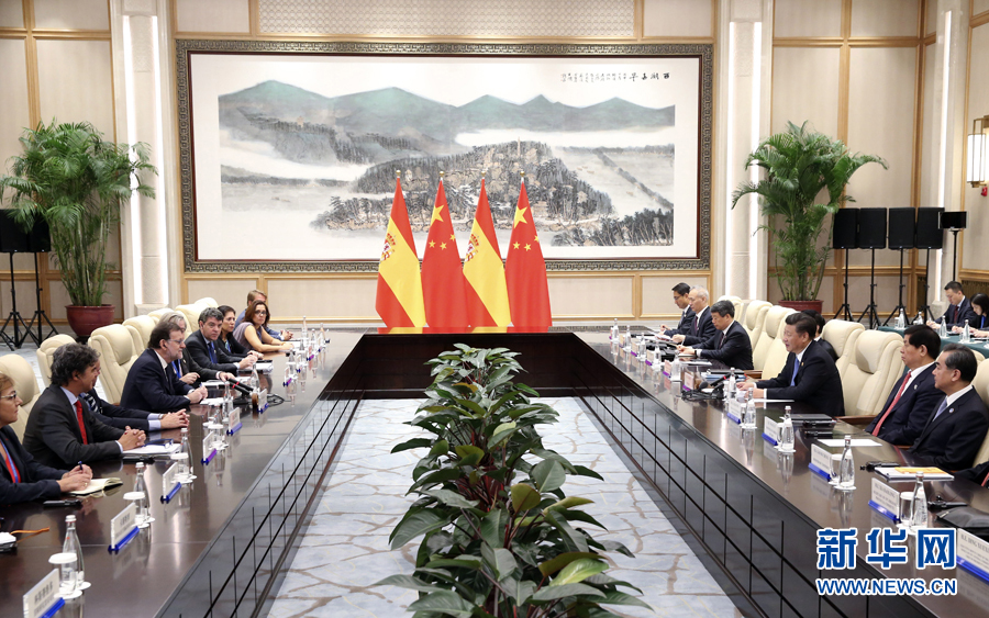 9月5日,國(guó)家主席習(xí)近平在杭州會(huì)見(jiàn)西班牙首相拉霍伊。新華社記者龐興雷攝