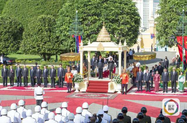 抵達金邊之前,習主席在當?shù)刂髁鲌蠹垺都砥艺狻钒l(fā)表署名文章,用“肝膽相照的好朋友”“情同手足的好鄰居”形容中柬友誼。如此情感外溢的表達,在中國外交用語中并不多見。?中柬之間這份濃濃的特殊情誼自習主席甫抵機場便撲面而來。24名柬埔寨禮兵分列紅毯兩側,白色頭盔、藍色制服,分外莊嚴。對外國領導人的國事訪問,柬方一般以12名禮兵相迎,這種“加倍”的禮遇,背后是中柬關系的深情厚意。