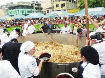 克韋多市作為“炒冷飯”的故鄉(xiāng),為了推廣國內(nèi)和國際旅游,在2013年還曾做過一個(gè)世界最大的“炒冷飯”。當(dāng)時(shí)使用的鍋直徑4米,深1.5米,使用的食材有500公斤大米、1000個(gè)雞蛋、50升油、三大桶醬油,還有上百公斤的雞肉、蝦仁等,40多名廚師學(xué)校的學(xué)生一起參與了制作?,F(xiàn)場數(shù)千民眾隨后一起享用了這個(gè)巨無霸“炒冷飯”。