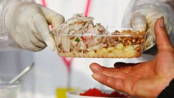 ????“塞維切”是深受秘魯人喜愛的傳統(tǒng)美食,其基本做法是將經(jīng)過加工的鮮魚、蝦、貝類等海產(chǎn)品與切碎的洋蔥、辣椒等用檸檬汁腌制而成,享用時(shí)配上煮熟的紅薯和嫩玉米等,被譽(yù)為秘魯“國菜”。