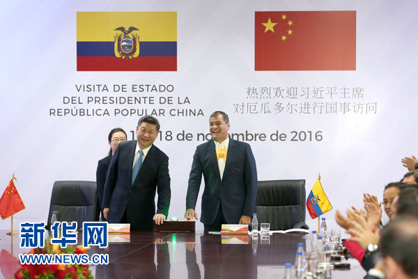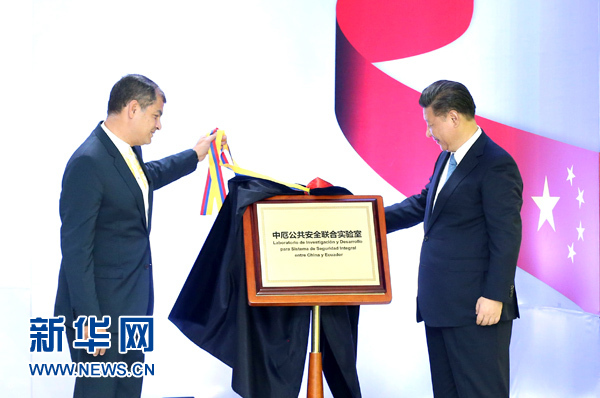 新華社基多11月18日電(記者王聰 霍小光)國家主席習(xí)近平18日在基多同厄瓜多爾總統(tǒng)科雷亞共同出席中方援建的厄瓜多爾公共安全應(yīng)急指揮中心聯(lián)合實驗室揭牌儀式,喬內(nèi)醫(yī)院奠基、科卡科多-辛克雷水電站竣工發(fā)電視頻連線活動。