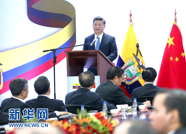 習(xí)近平在致辭中指出,中厄友誼源遠流長。近年來,雙邊友好關(guān)系實現(xiàn)了全面發(fā)展,并剛剛升級為全面戰(zhàn)略伙伴關(guān)系。兩國能夠加強合作,得益于雙方對發(fā)展前景的堅定信心,對互為發(fā)展機遇的清晰認知。當前,中國和厄瓜多爾深化互利共贏合作恰逢其時。中方愿同厄方深化合作、攜手發(fā)展,共同譜寫兩國全面戰(zhàn)略伙伴關(guān)系新篇章。