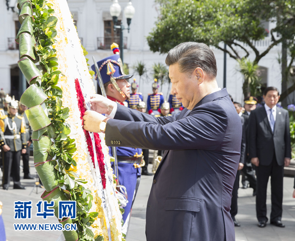 同日,習(xí)近平向厄瓜多爾獨立英雄紀念碑敬獻花圈。