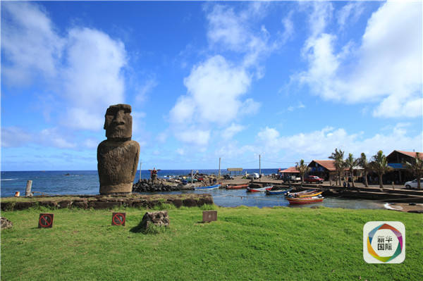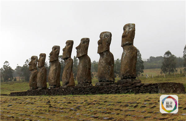 位于復活節(jié)島中部的“阿胡阿奇利”巨人石像群。(新華社記者葉書宏攝)