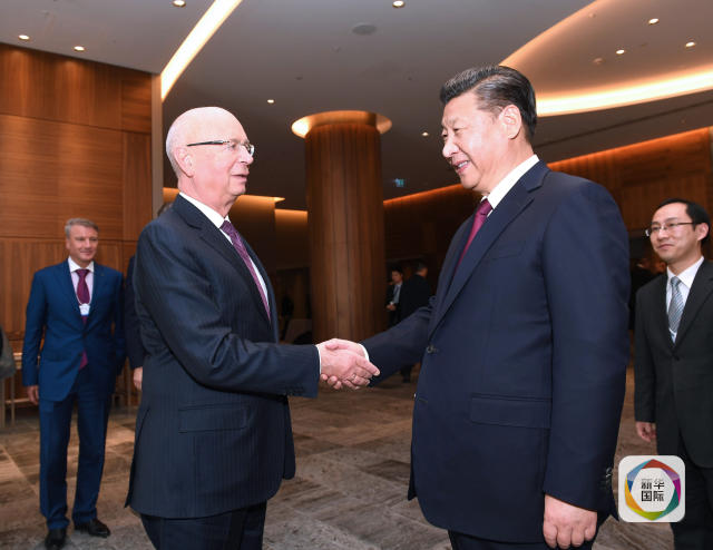 1月17日,國家主席習近平在瑞士達沃斯會見世界經濟論壇主席施瓦布。新華社記者饒愛民攝