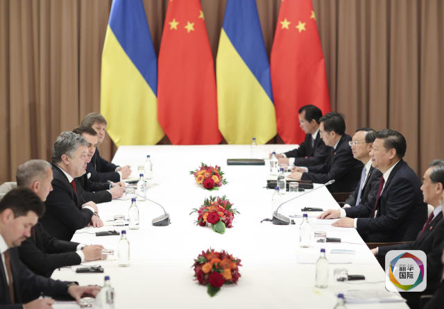 1月17日,國(guó)家主席習(xí)近平在瑞士達(dá)沃斯會(huì)見烏克蘭總統(tǒng)波羅申科。(新華社記者 丁林 攝)