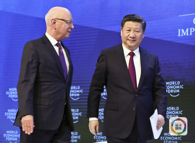 1月17日,國家主席習近平在瑞士達沃斯國際會議中心出席世界經濟論壇2017年年會開幕式,并發(fā)表題為《共擔時代責任 共促全球發(fā)展》的主旨演講。這是習近平同世界經濟論壇創(chuàng)始人兼執(zhí)行主席施瓦布在一起。(新華社記者 蘭紅光 攝)