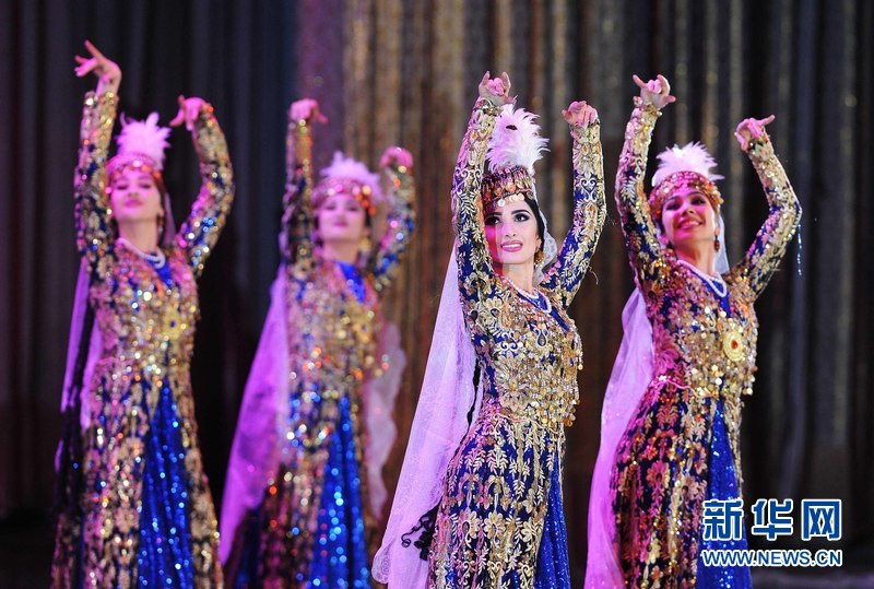 1月18日晚,烏茲別克斯坦首都塔什干人民友誼宮,烏茲別克斯坦舞蹈演員在表演中烏傳統(tǒng)舞蹈。
