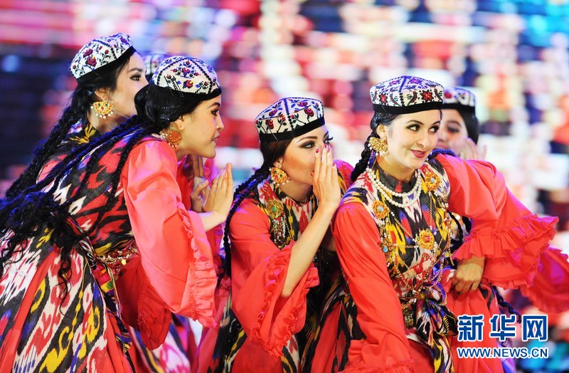 1月18日晚,烏茲別克斯坦首都塔什干人民友誼宮,烏茲別克斯坦舞蹈演員在表演中烏傳統(tǒng)舞蹈。新華網(wǎng)記者 沙達(dá)提 攝