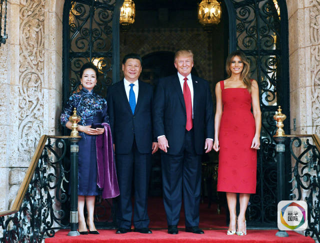 當(dāng)?shù)貢r(shí)間4月6日,國家主席習(xí)近平在美國佛羅里達(dá)州海湖莊園同美國總統(tǒng)特朗普舉行中美元首會晤。這是習(xí)近平和夫人彭麗媛同特朗普和夫人梅拉尼婭合影留念。(新華社記者饒愛民攝)