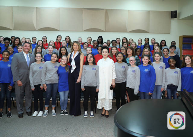 國家主席習近平夫人彭麗媛首先參觀巴克藝術中學的聲樂教室,她親切地向?qū)W生們問好,并欣賞幾十名學生們演唱的音樂劇《小婦人》選段《出色》。彭麗媛稱贊學生們唱得很好。