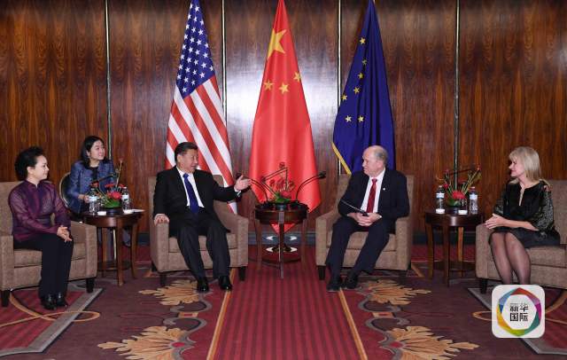 當?shù)貢r間4月7日,國家主席習近平在美國阿拉斯加州安克雷奇會見阿拉斯加州州長沃克。(新華社記者饒愛民攝)