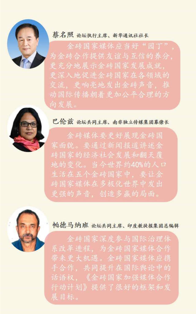 在論壇上,各方還通過了《金磚國(guó)家加強(qiáng)媒體合作行動(dòng)計(jì)劃》。相信在未來,金磚國(guó)家媒體的合作內(nèi)涵、合作深度、合作廣度將與金磚國(guó)家戰(zhàn)略伙伴關(guān)系一同進(jìn)一步拓展深化!