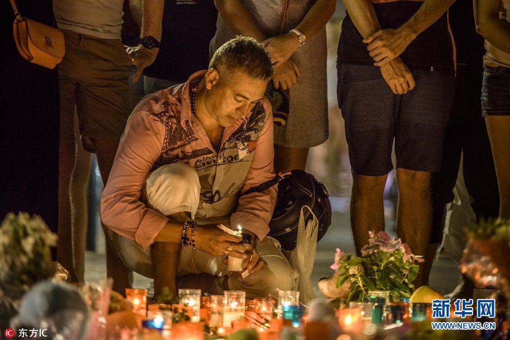 當(dāng)?shù)貢r間2017年8月18日,西班牙巴塞羅那,當(dāng)?shù)孛癖婞c(diǎn)燭獻(xiàn)花悼念恐襲事件遇難者。17日,一輛白色貨車在巴塞羅那市中心蘭布拉大道加泰羅尼亞廣場附近沖撞人群,據(jù)媒體報道,死亡人數(shù)已經(jīng)升至14人。(圖片來源: 東方IC)