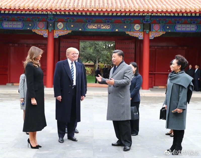 新華網(wǎng)北京11月8日電? 國家主席習(xí)近平和夫人彭麗媛11月8日陪同來華進(jìn)行國事訪問的美國總統(tǒng)特朗普和夫人梅拉尼婭參觀故宮博物院。(攝影:新華社記者蘭紅光、劉衛(wèi)兵、謝環(huán)馳 據(jù)新華社“新華視點(diǎn)”微博報(bào)道)