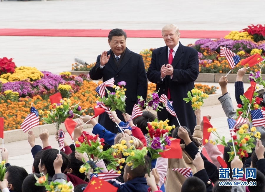 11月9日,國家主席習(xí)近平在北京人民大會(huì)堂東門外廣場舉行歡迎儀式,歡迎美利堅(jiān)合眾國總統(tǒng)唐納德·特朗普對中國進(jìn)行國事訪問。 新華社記者李學(xué)仁 攝