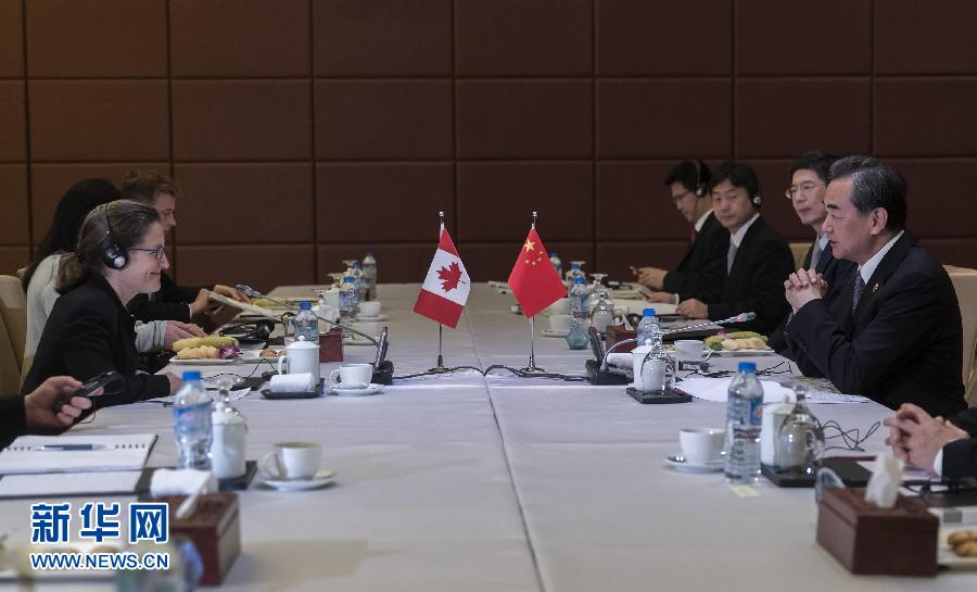王毅會見加拿大外長弗里蘭