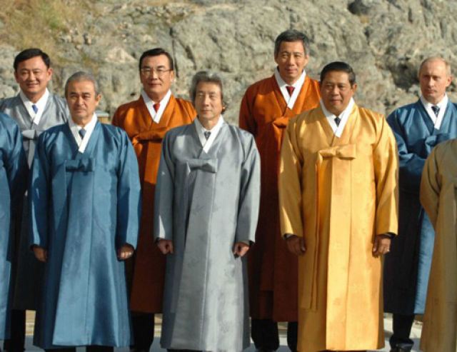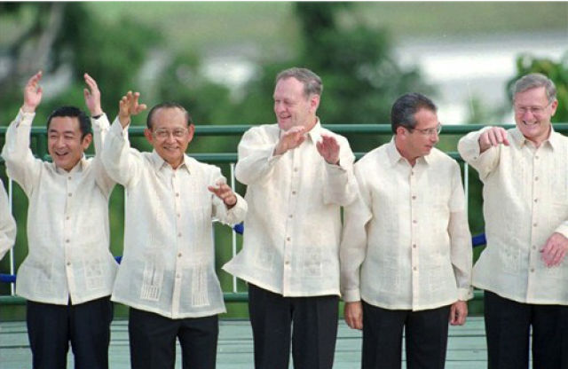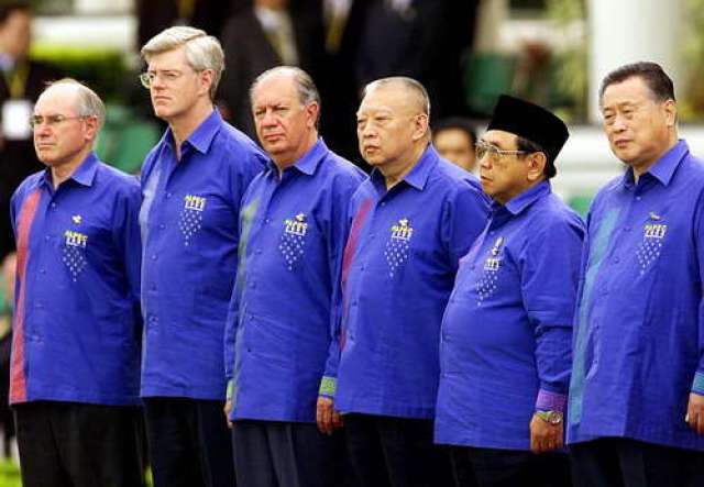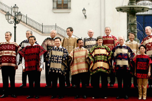 1993年,首屆APEC領(lǐng)導人非正式會議在美國西雅圖召開。各經(jīng)濟體領(lǐng)導人不帶助手和隨身翻譯,不穿正裝。從那以后,在一年一度的APEC領(lǐng)導人非正式會議期間,東道主通常會為與會領(lǐng)導人提供特別制作的當?shù)貍鹘y(tǒng)服裝,在宣介東道主傳統(tǒng)文化的同時,也體現(xiàn)“亞太大家庭”的理念。