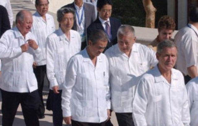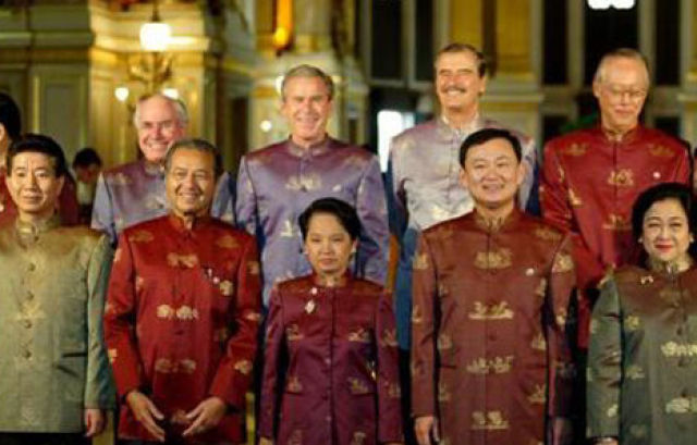 時任印尼總統(tǒng)蘇哈托贈送每位領(lǐng)導人一件巴提克——一種蠟染印花襯衣。
