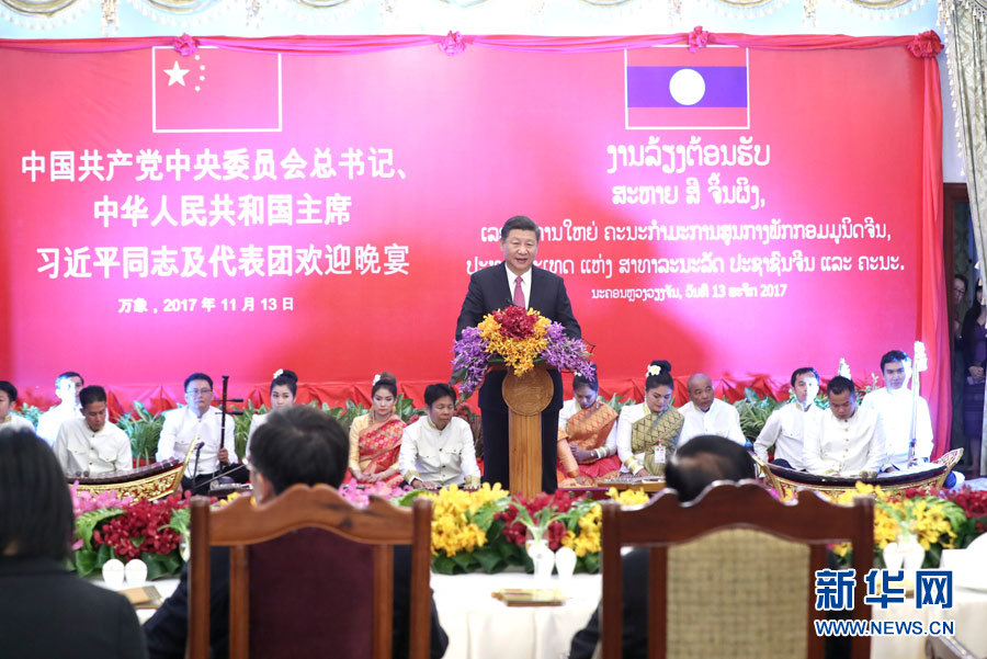 11月13日,中共中央總書記、國家主席習(xí)近平在萬象出席老撾人民革命黨中央委員會總書記、國家主席本揚舉行的歡迎宴會。這是習(xí)近平在宴會上致辭。新華社記者 馬占成 攝