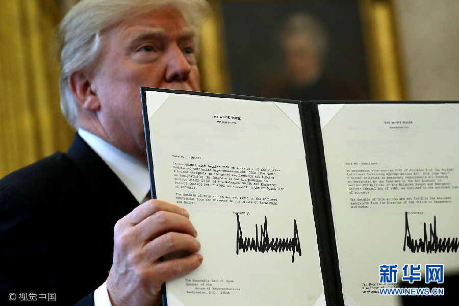 當(dāng)?shù)貢r(shí)間22日,美國(guó)華盛頓,美國(guó)總統(tǒng)特朗普在白宮的橢圓形辦公室簽署1.5萬(wàn)億美元稅改法案,此乃美國(guó)最近逾30年來(lái)最大規(guī)模減稅行動(dòng)。(圖片來(lái)源:視覺(jué)中國(guó))