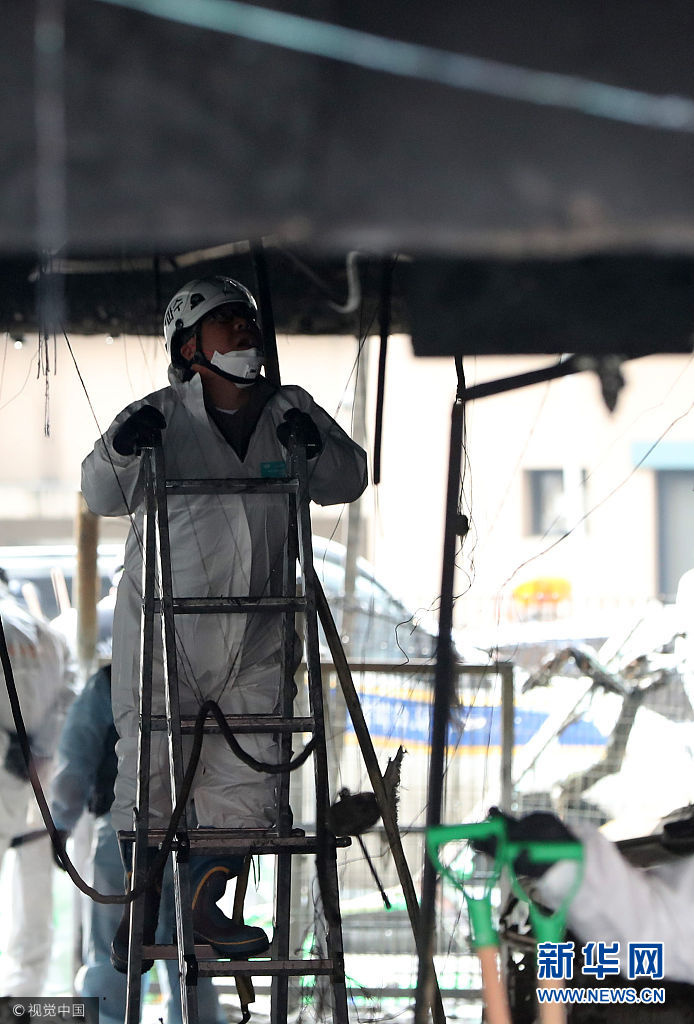 當(dāng)?shù)貢r間2017年12月23日,火災(zāi)現(xiàn)場。21日發(fā)生在韓國忠清北道堤川市一運動中心的火災(zāi)已造成29人,現(xiàn)場留下民眾逃生痕跡。(圖片來源:視覺中國)
