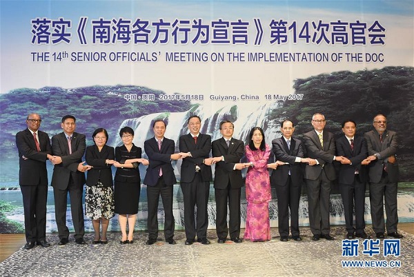 5月18日,與會代表在出席落實(shí)《南海各方行為宣言》第14次高官會前合影留念。5月17日至18日,中國與東盟國家在貴州省貴陽市舉行落實(shí)《南海各方行為宣言》第14次高官會和第21次聯(lián)合工作組會。新華社記者 劉續(xù)攝