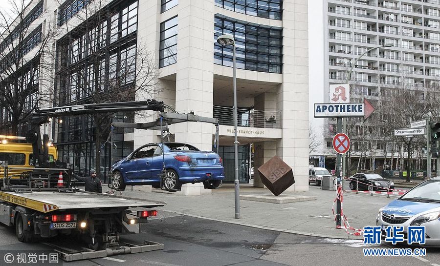 12月25日,德國(guó)柏林,一輛轎車(chē)闖入社民黨總部大樓并撞毀。(圖片來(lái)源:視覺(jué)中國(guó))