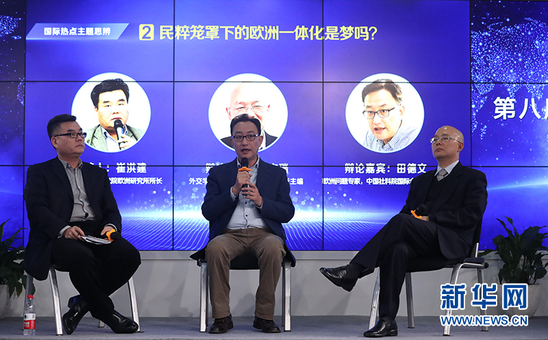 12月26日,新華網(wǎng)第八屆“縱論天下”國際問題研討會(huì)成功舉行。圖為中國社科院國際合作局副局長、歐洲問題專家田德文在發(fā)言。新華網(wǎng)發(fā)(郭小天攝)。