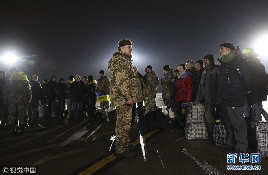 12月27日,烏克蘭哈爾科夫,獲釋戰(zhàn)俘抵達(dá)哈爾科夫。烏克蘭政府軍與東部民間武裝當(dāng)日舉行了大規(guī)模的交換戰(zhàn)俘行動(dòng)。(圖片來源:視覺中國)