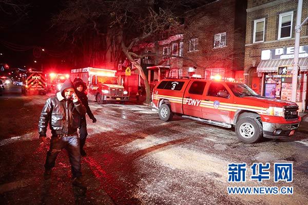 12月29日凌晨,人們從美國(guó)紐約布朗克斯區(qū)發(fā)生火災(zāi)的樓房附近經(jīng)過(guò)。新華社記者 王迎 攝