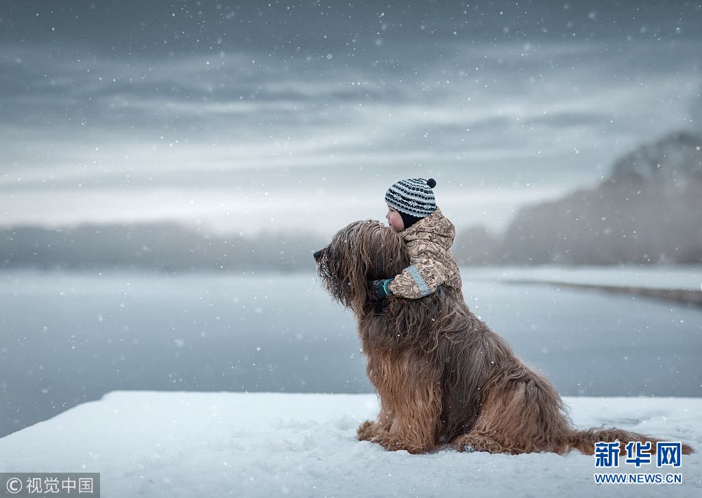 4歲6個月的Gregory抱著伯瑞犬Krispy,它有40公斤重68厘米高。(圖片來源:視覺中國)