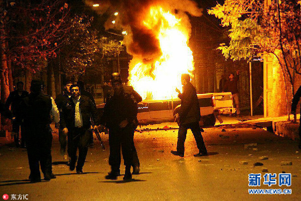 當(dāng)?shù)貢r(shí)間2017年12月30日,伊朗洛雷斯坦省,民眾參加示威活動(dòng),抗議總統(tǒng)魯哈尼統(tǒng)治下的伊朗高物價(jià)和惡劣經(jīng)濟(jì)狀況。(圖片來源:東方IC)