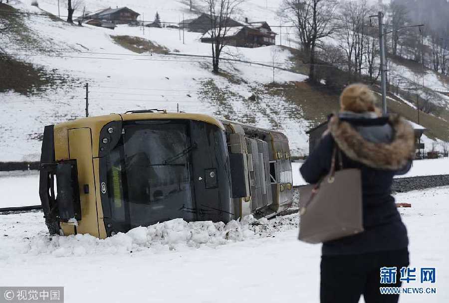1月3日,瑞士倫克,風(fēng)暴“埃莉諾”來襲,一列火車被大風(fēng)吹得脫軌了。風(fēng)暴“埃莉諾”襲擊該國,數(shù)千戶家庭斷電。瑞士氣象局對該國大部分地區(qū)發(fā)出了大風(fēng)警報,許多道路被關(guān)閉,一些航班被取消,部分地區(qū)的客輪交通被迫中斷。瑞士警方稱,有數(shù)人被困在圣加侖州的一處滑雪纜車上。而在倫克地區(qū),大風(fēng)把一列火車吹得脫軌了。(圖片來源:視覺中國)