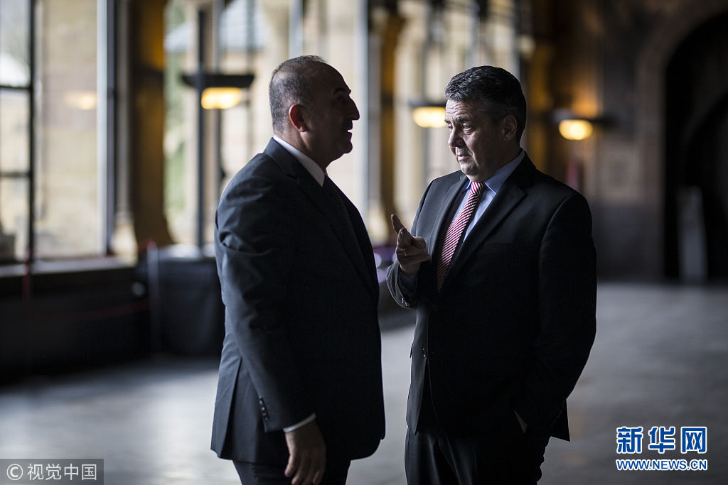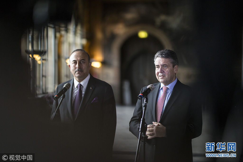 當?shù)貢r間2018年1月6日,德國戈斯拉爾,德國外交部長加布里爾與土耳其外交部長梅夫呂特·恰武什奧盧發(fā)表聯(lián)合聲明。(圖片來源:視覺中國)
