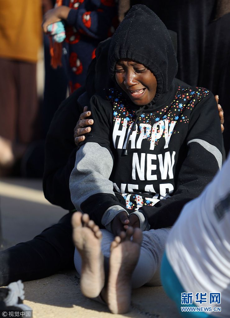 當(dāng)?shù)貢r間2018年1月7日,利比亞的黎波里,獲救的非法移民。6日上午在利比亞附近海域發(fā)生了一起非法移民船傾覆事故,在巡邏飛機(jī)發(fā)現(xiàn)該遇險船只后,周圍的意大利海岸警衛(wèi)隊(duì)及意大利海軍船只迅速駛近實(shí)施救援,成功救起80余人,同時發(fā)現(xiàn)了8名遇難者。據(jù)外媒報道,這艘小船從該國海岸出發(fā)時載有超過100人。(圖片來源:視覺中國)