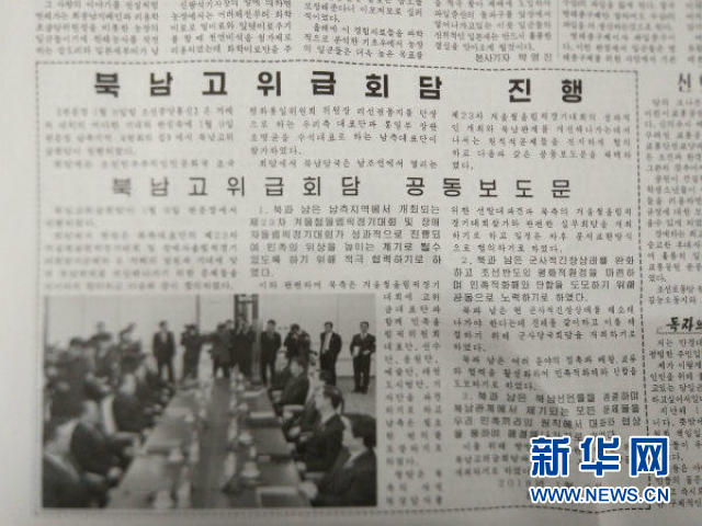 文章前一部分是對會談情況的簡單介紹,后一部分直接發(fā)布了朝韓高級別會談聯(lián)合新聞公報的內(nèi)容。