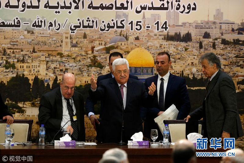 1月14日,約旦河西岸拉馬拉,巴勒斯坦總統(tǒng)阿巴斯在巴勒斯坦中央委員會會議上發(fā)表講話,并稱以色列已經“終止”了奧斯陸協(xié)議。(圖片來源:視覺中國)