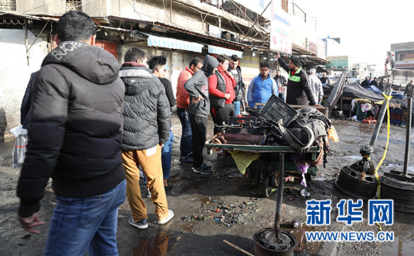 1月15日,在伊拉克首都巴格達,人們聚集在爆炸現場附近。 新華社發(fā)(哈利勒·達伍德攝)