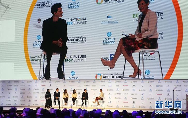 1月15日,在阿聯(lián)酋阿布扎比舉行的2018世界未來能源峰會開幕式現(xiàn)場,五名來自不同國家和地區(qū)的青年代表就可持續(xù)發(fā)展等議題進行討論。 新華社記者蘇小坡 攝